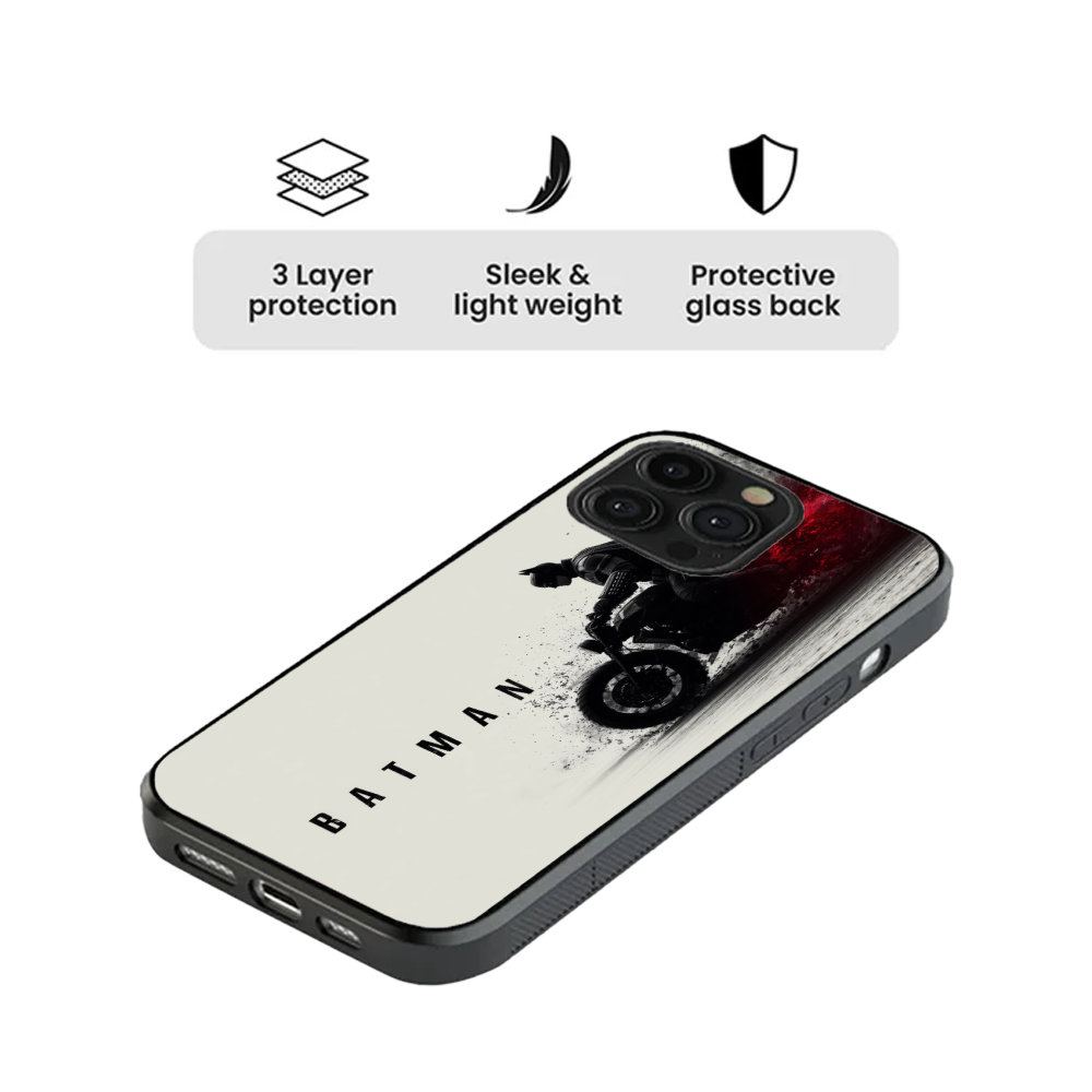 Dark, gritty, and cinematic — the Batman Noir Drift Case looks straight out of a movie poster. Featuring Batman tearing through the shadows on his bike with a red flare slicing through the darkness, the whole design screams raw Gotham energy. The vertical “BATMAN” text adds that clean, minimal aesthetic.