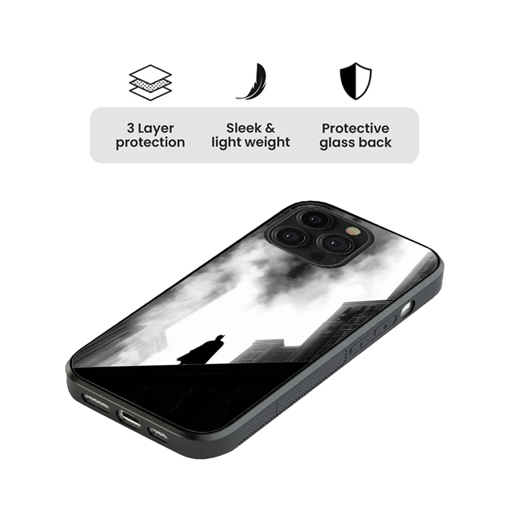 A minimalist noir masterpiece for true Batman fans. This design captures the Dark Knight standing guard over Gotham, silhouetted against towering skyscrapers and swirling clouds. Clean, bold, and cinematic — it’s a tribute to the legend who watches the city from the shadows. Perfect for anyone who carries a bit of Gotham’s grit and mystery wherever they go. 🖤🦇