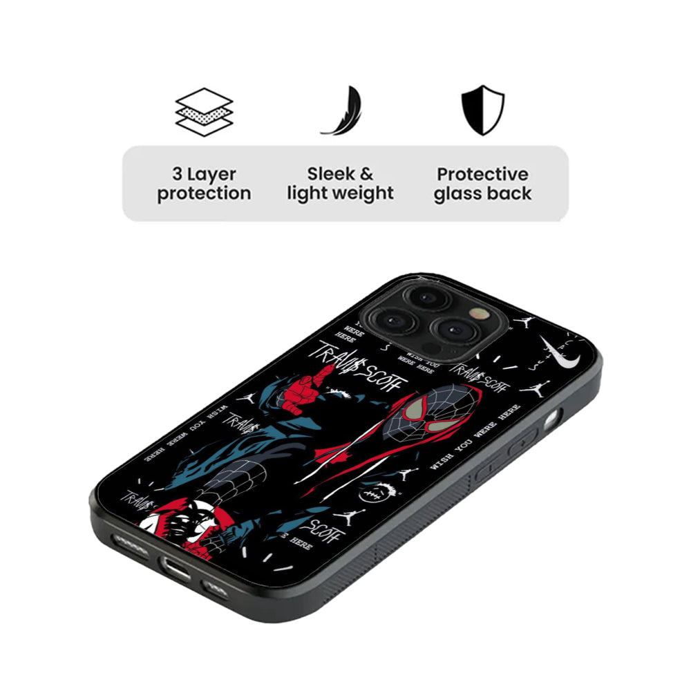 Where Spider-Verse meets streetwear legend. The Miles Morales – Cactus Swing case is a bold fusion of Brooklyn’s favorite Spider-Man and the unmistakable aesthetic of Travis Scott. With a deep black backdrop layered in Cactus Jack motifs, graffiti tags, and “Wish You Were Here” stamps, this design drips with attitude.